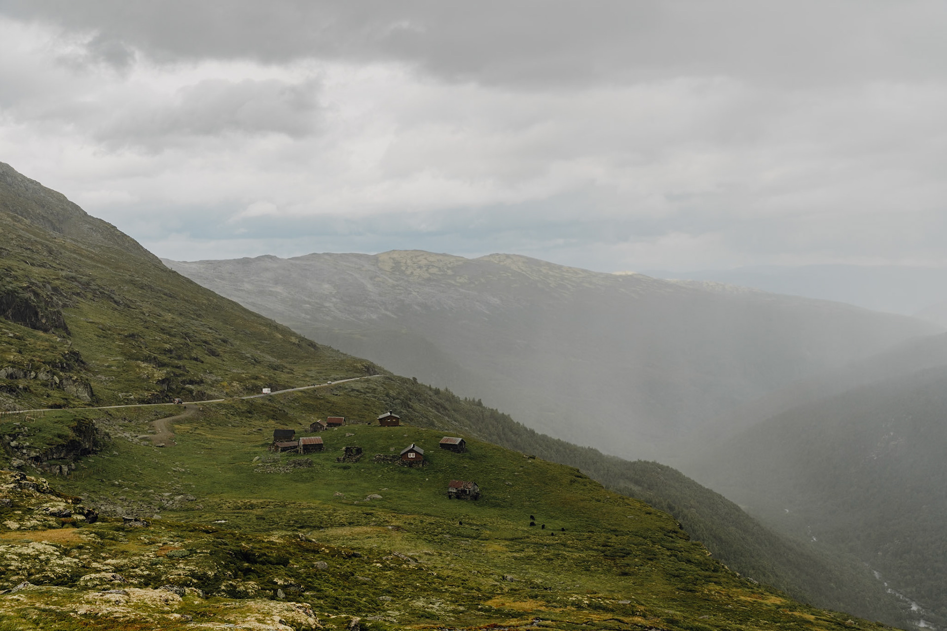 On the Aurlandsfjellet Scenic Route, above the longest tunnel in Norway, the Lærdal Tunnel, which cuts under the mountain.